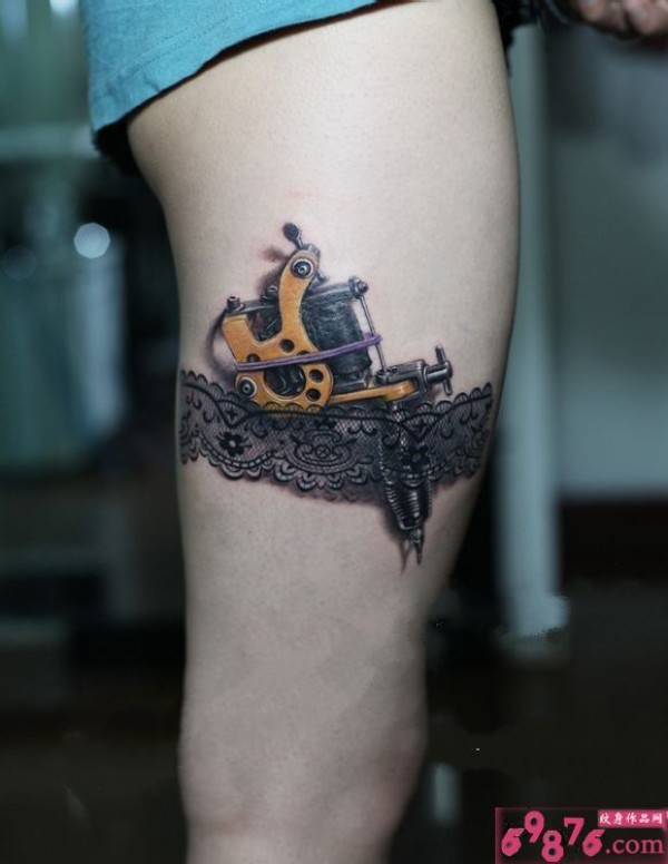 黑蕾丝与纹身机器的小性感_腿部纹身图案大全_纹身图吧