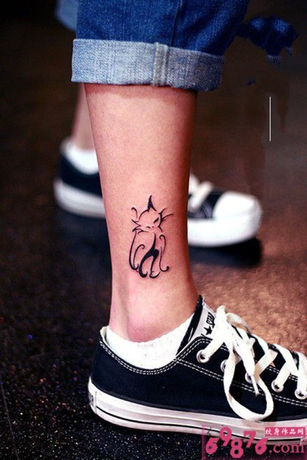 猫咪图腾小腿纹身_腿部纹身图案大全_纹身图吧
