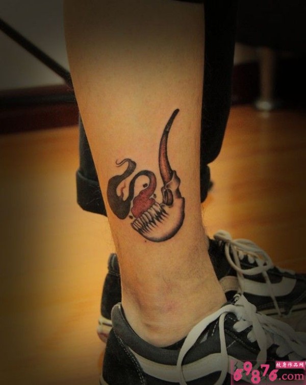 创意小腿牙齿烟斗_腿部纹身图案大全_纹身图吧
