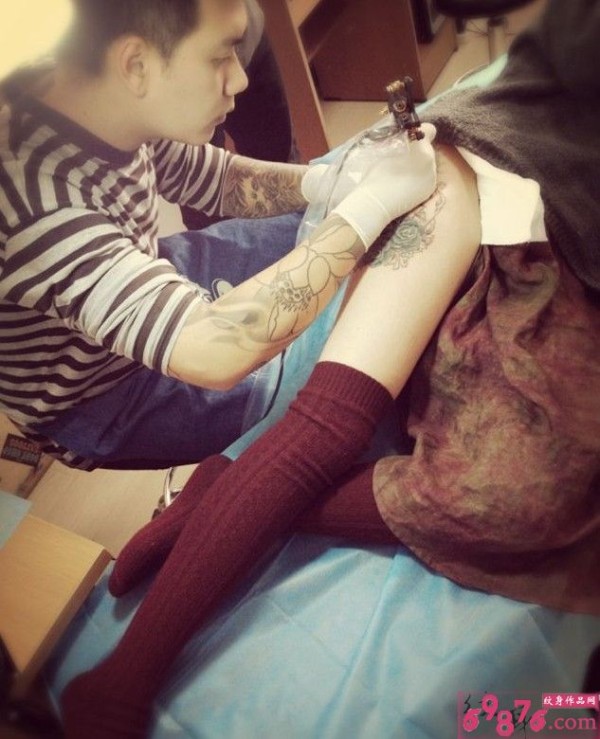 帅哥纹身师大腿花纹身现场_腿部纹身图案大全_纹身图吧