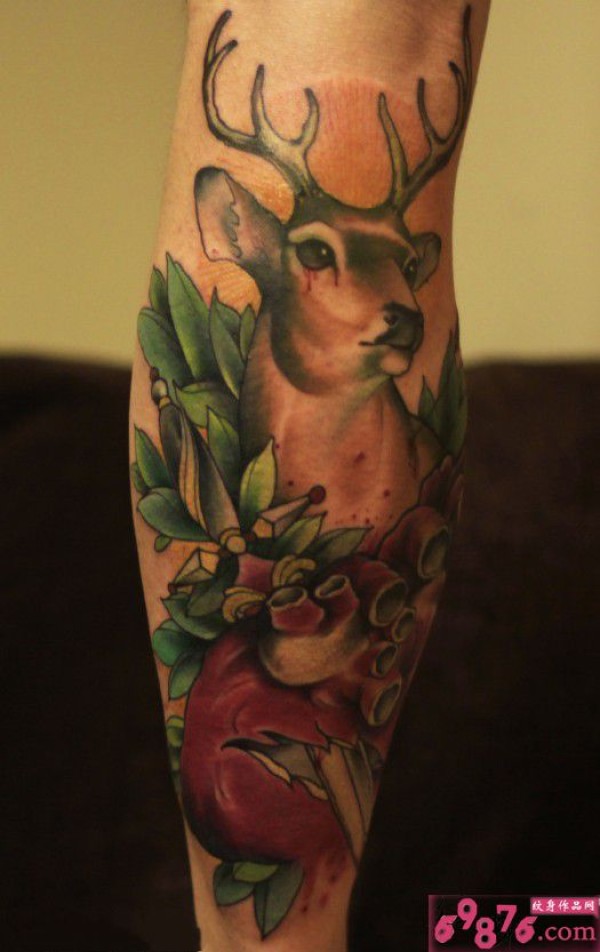 彩色麋鹿创意小腿纹身_腿部纹身图案大全_纹身图吧