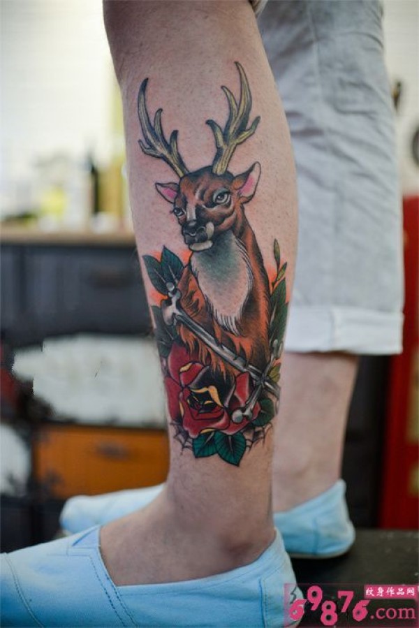 彩色麋鹿小腿纹身_腿部纹身图案大全_纹身图吧
