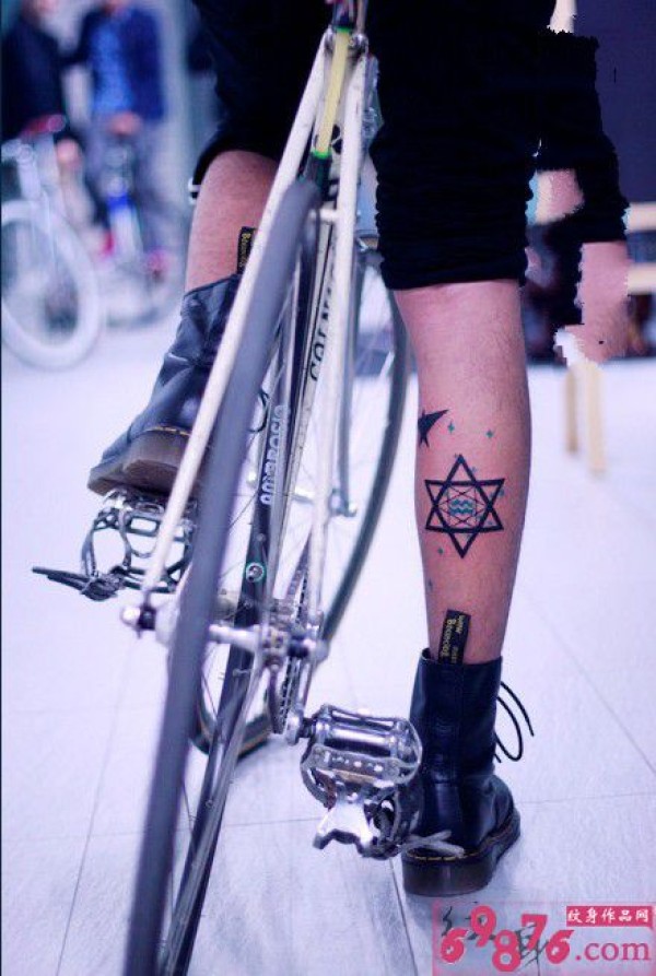 六角芒星小腿创意纹身_腿部纹身图案大全_纹身图吧
