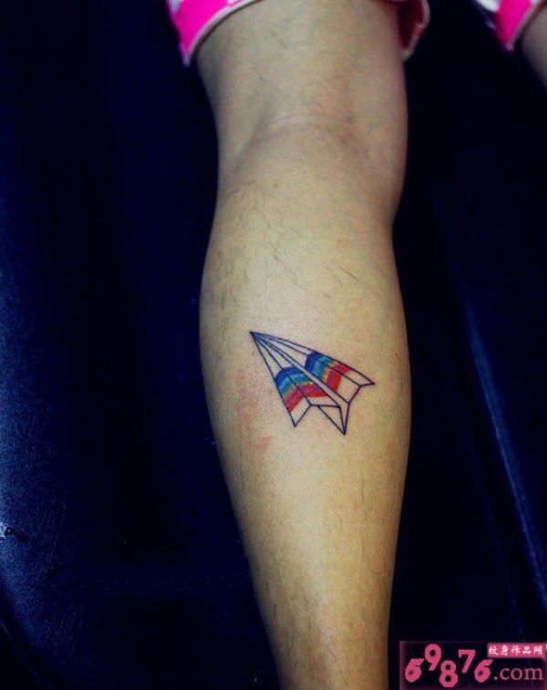 彩虹纸飞机小腿纹身_腿部纹身图案大全_纹身图吧