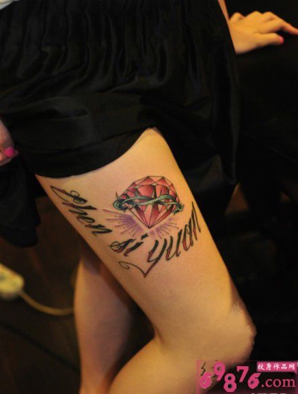 欧美花体英文钻石大腿纹身_腿部纹身图案大全_纹身图吧