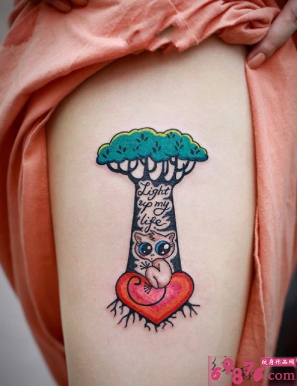 创意红心树动物纹身_腿部纹身图案大全_纹身图吧