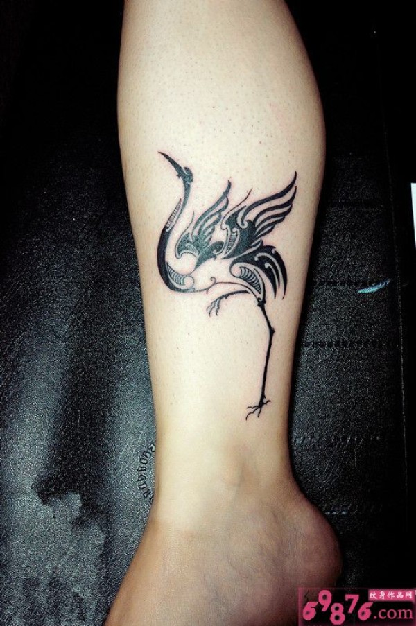 小腿丹顶鹤清新纹身_腿部纹身图案大全_纹身图吧