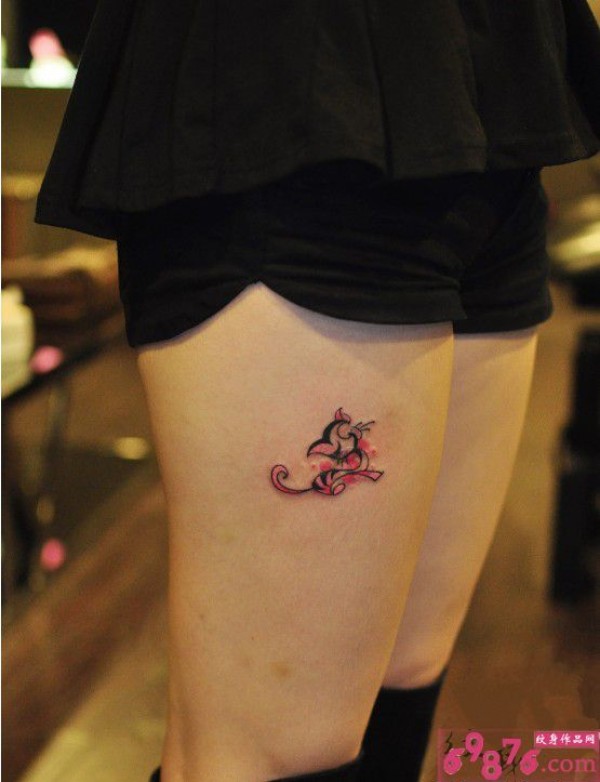 大腿小清新性感猫咪纹身_腿部纹身图案大全_纹身图吧