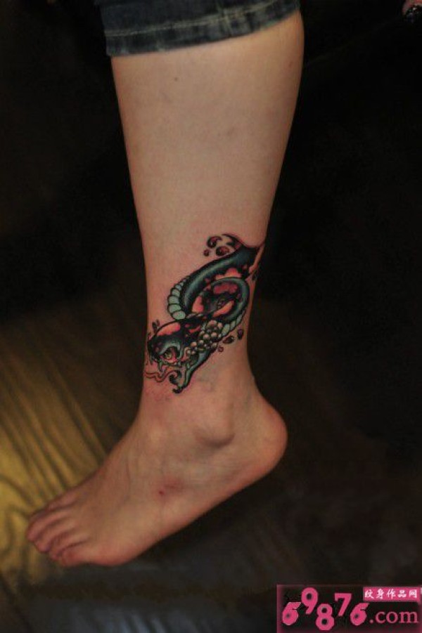 脚踝小细蛇时尚纹身_腿部纹身图案大全_纹身图吧