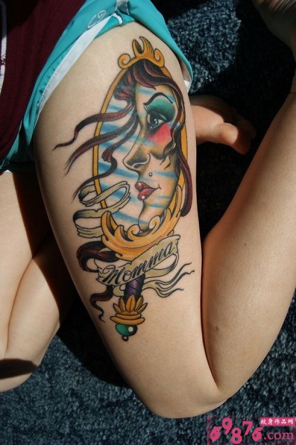 大腿美女头像纹身图案_腿部纹身图案大全_纹身图吧