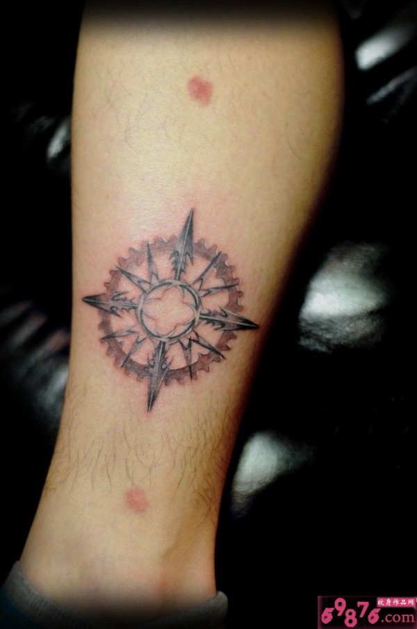 腿部指南针创意纹身_腿部纹身图案大全_纹身图吧