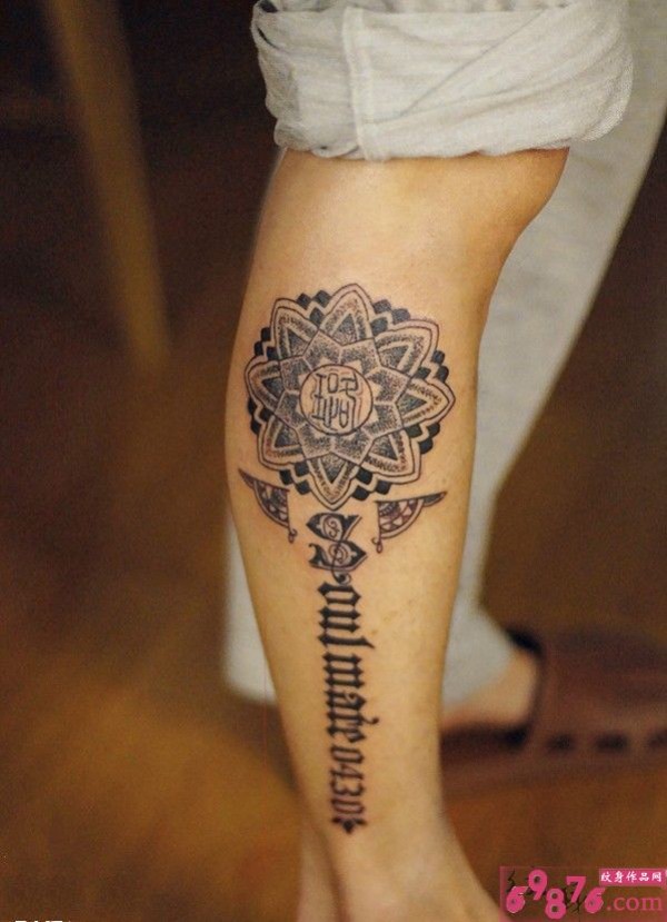 腿部点刺图腾与哥特式英文_腿部纹身图案大全_纹身图吧