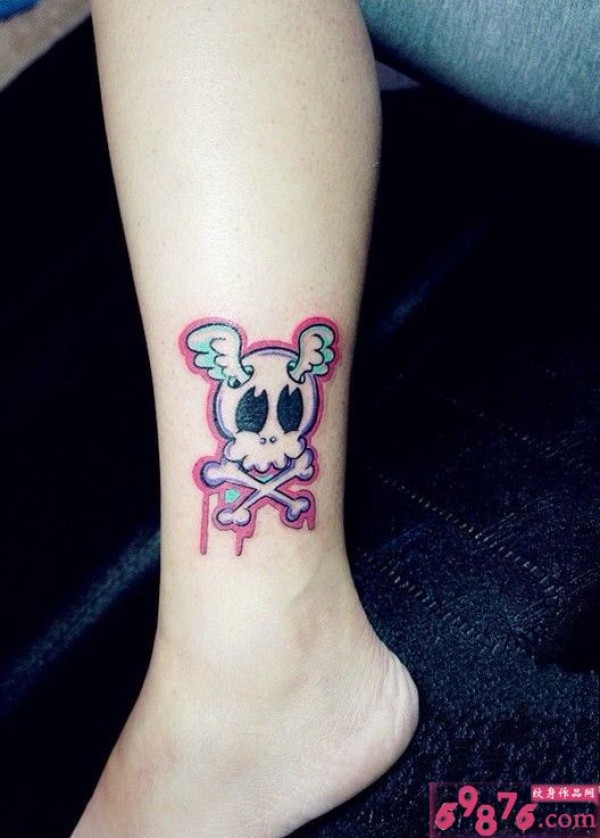 可爱骷髅刺青_腿部纹身图案大全_纹身图吧