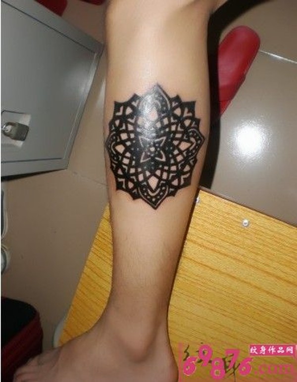 小腿创意中国莲花图腾_腿部纹身图案大全_纹身图吧