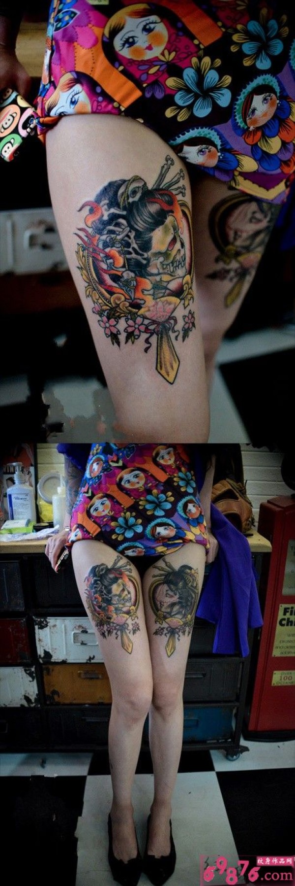 狂野美女双腿阴阳桃花扇_腿部纹身图案大全_纹身图吧