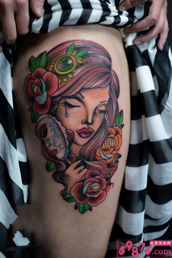 大腿高清落泪美女图_腿部纹身图案大全_纹身图吧