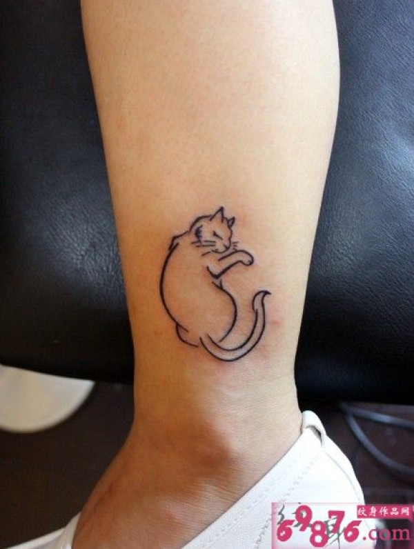 呆萌慵懒的猫咪_腿部纹身图案大全_纹身图吧