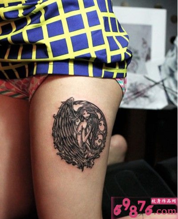 大腿欧式精灵纹身图案_腿部纹身图案大全_纹身图吧