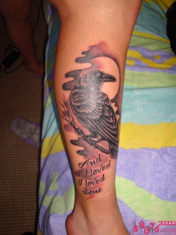 小腿个性乌鸦纹身_腿部纹身图案大全_纹身图吧
