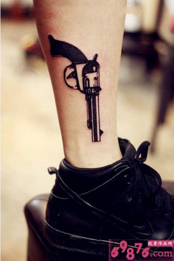 小腿个性手枪纹身_腿部纹身图案大全_纹身图吧