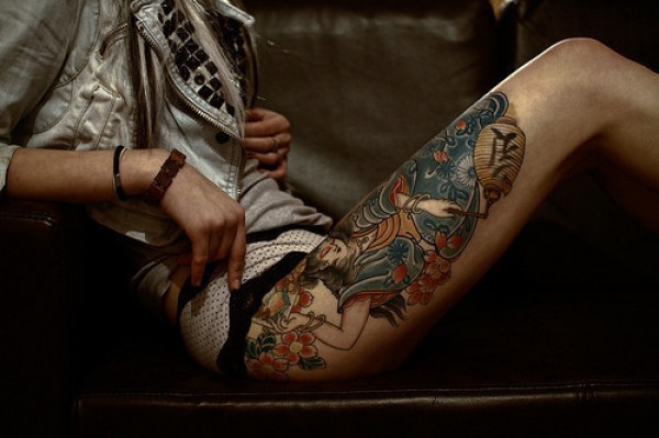 腿部人物肖像纹身_腿部纹身图案大全_纹身图吧