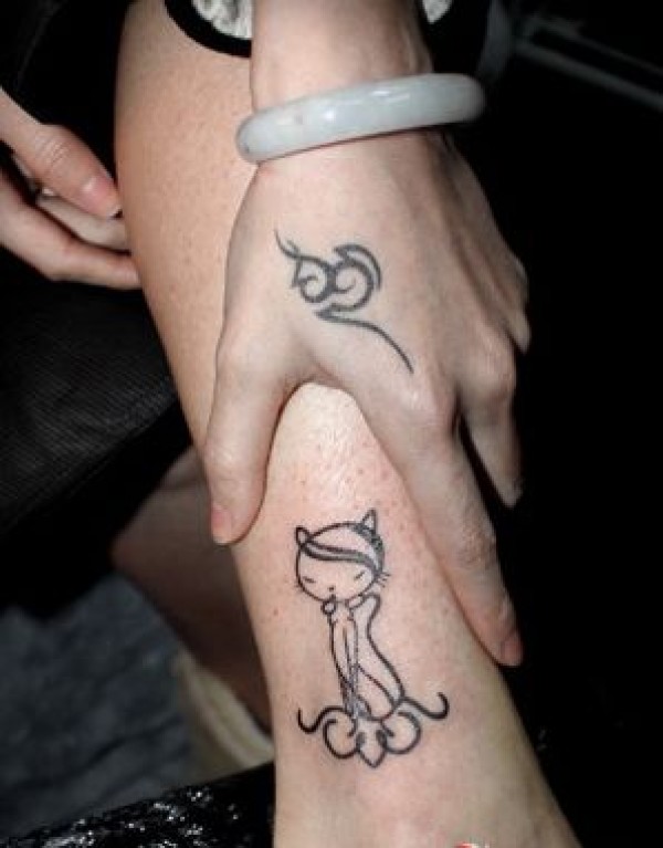 腿部可爱的图腾猫咪纹身_腿部纹身图案大全_纹身图吧