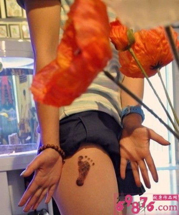 个性美女腿上可爱脚印纹身_腿部纹身图案大全_纹身图吧