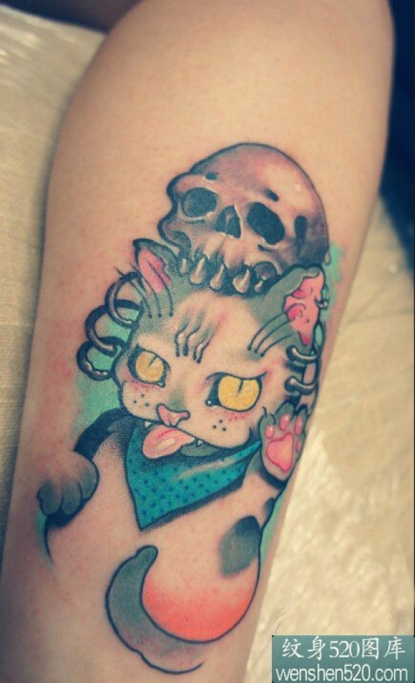 腿部彩色猫咪纹身图案_腿部纹身图案大全_纹身图吧