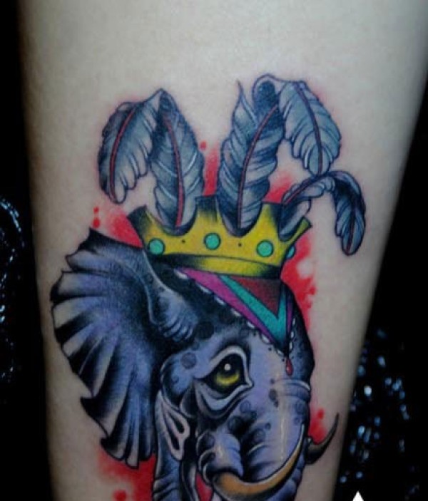 腿部彩色大象纹身_腿部纹身图案大全_纹身图吧