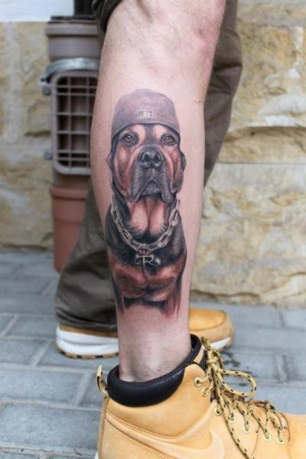 小腿部有个性的小狗纹身_腿部纹身图案大全_纹身图吧