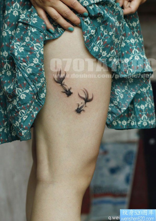 性感大腿上一幅精致金鱼纹身图片_腿部纹身图案大全_纹身图吧