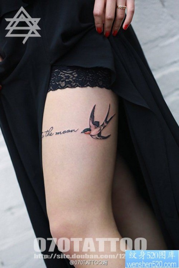 性感美女大腿上一幅燕子纹身图片_腿部纹身图案大全_纹身图吧