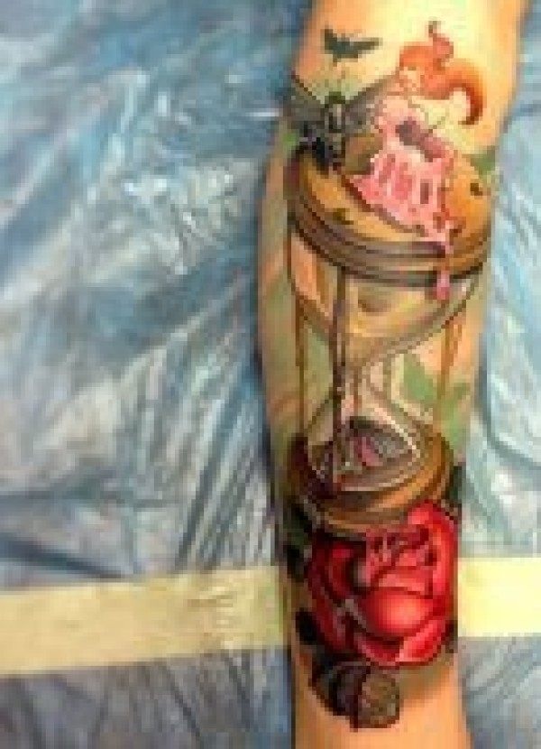 小腿部漂亮的沙漏纹身图案_腿部纹身图案大全_纹身图吧