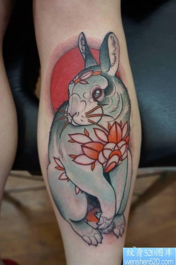 女人腿部兔子纹身图片由纹身520图库推荐_腿部纹身图案大全_纹身图吧