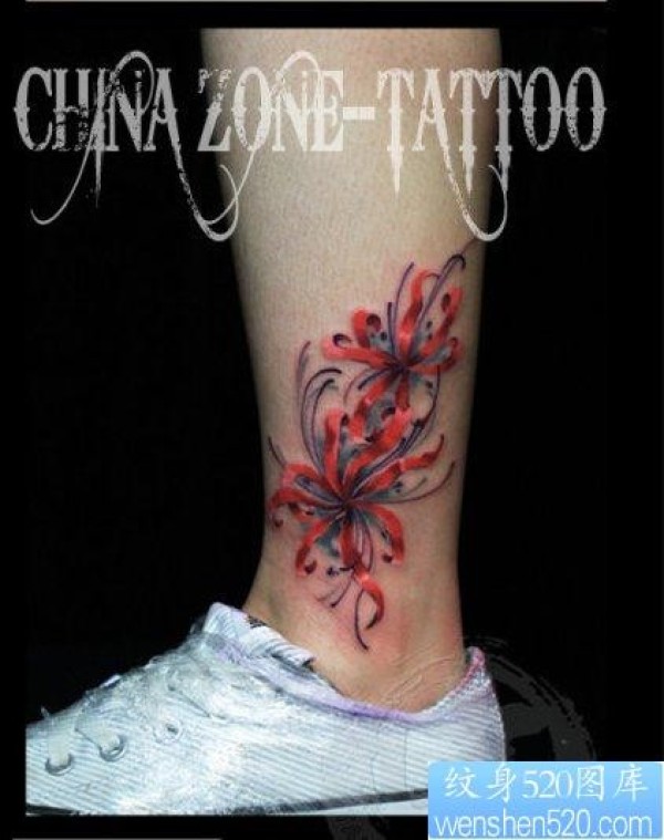 腿部漂亮时尚的彩色彼岸花纹身图片_腿部纹身图案大全_纹身图吧