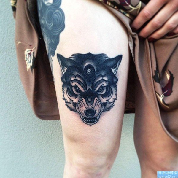 推荐一幅大腿上性感潮流狼头纹身图片_腿部纹身图案大全_纹身图吧