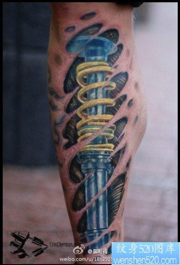 腿部超酷的另类的机械腿纹身图片_腿部纹身图案大全_纹身图吧