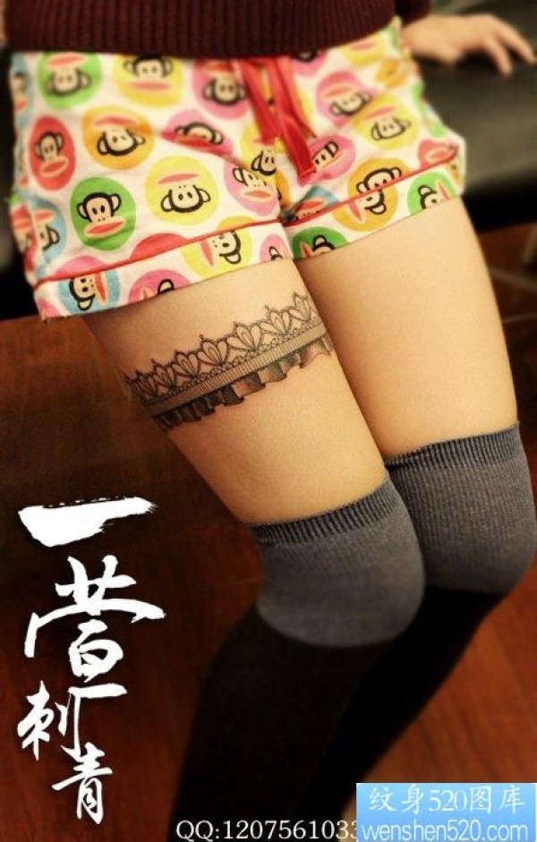 女人大腿潮流流行的蕾丝纹身图片_腿部纹身图案大全_纹身图吧