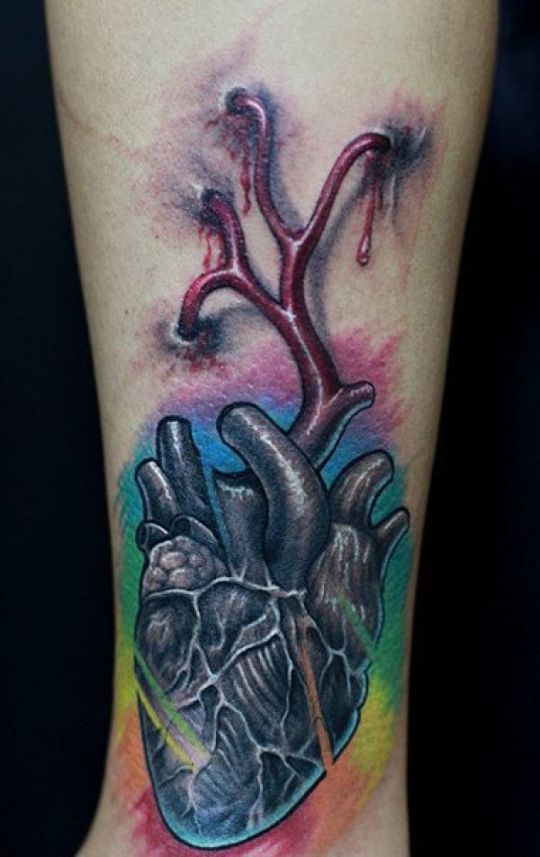 推荐一幅小腿心脏纹身图片_腿部纹身图案大全_纹身图吧