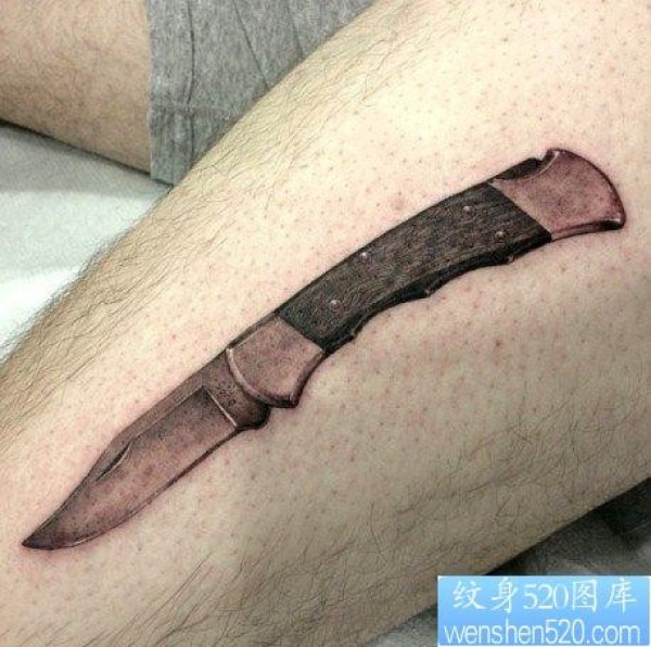 小腿上一幅个性匕首纹身图片_腿部纹身图案大全_纹身图吧