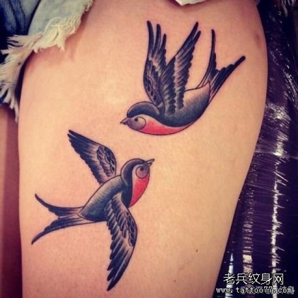 一幅大腿燕子纹身图片由纹身520图库推荐_腿部纹身图案大全_纹身图吧