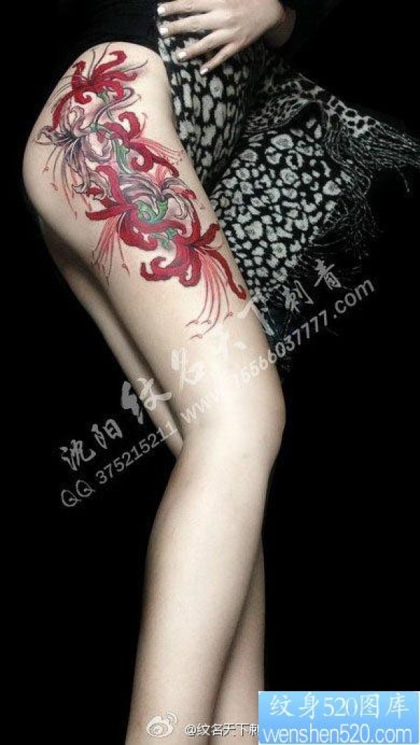 性感的美女腿部彩色彼岸花纹身图片_腿部纹身图案大全_纹身图吧
