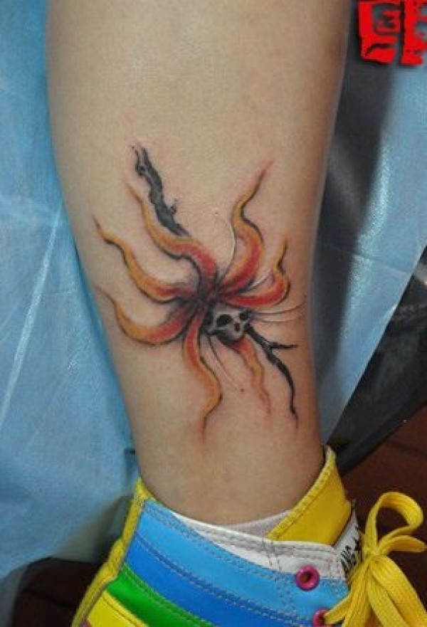 腿部彩色精灵纹身图_腿部纹身图案大全_纹身图吧