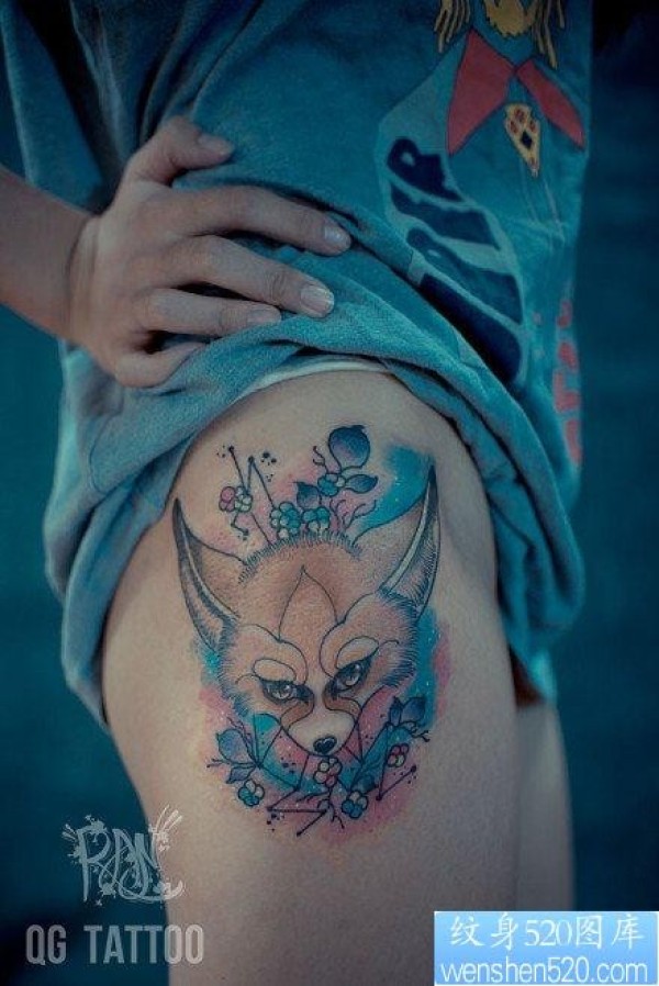 女人腿部流行可爱的狐狸纹身图片_腿部纹身图案大全_纹身图吧