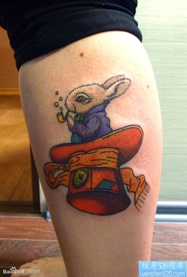 腿部一张抽烟的小兔子纹身图片_腿部纹身图案大全_纹身图吧
