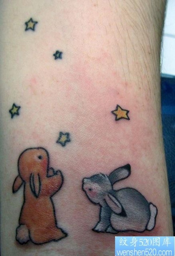 腿部超可爱的小兔子纹身图片_腿部纹身图案大全_纹身图吧
