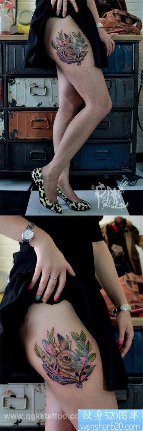 美女腿部可爱的小兔子纹身图片_腿部纹身图案大全_纹身图吧