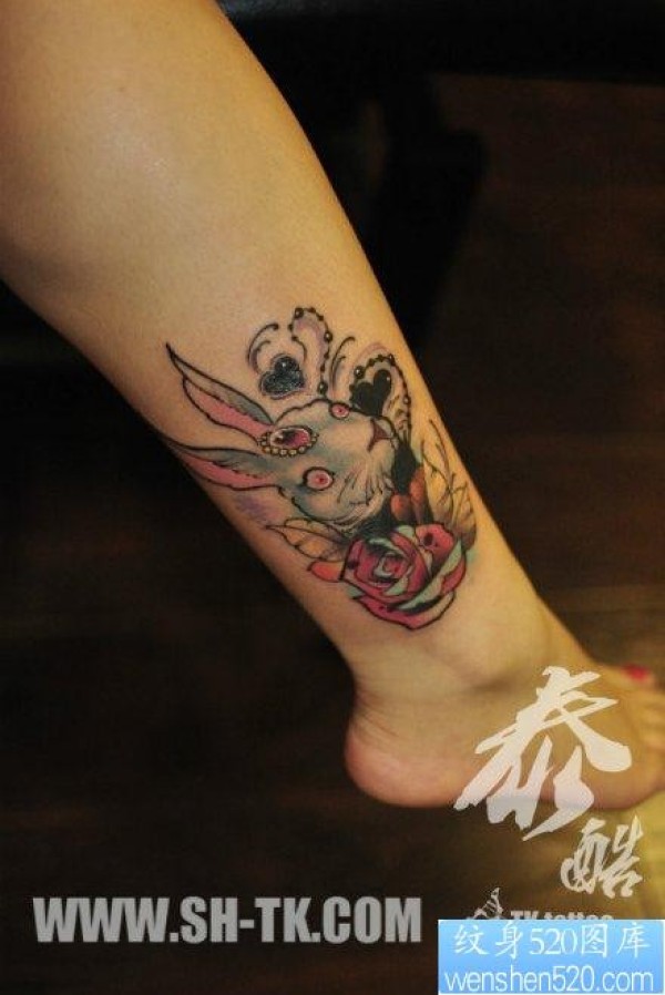 女人腿部可爱流行的兔子纹身图片_腿部纹身图案大全_纹身图吧