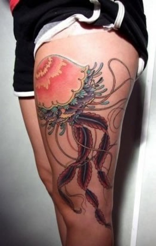 腿部水母图案纹身_腿部纹身图案大全_纹身图吧