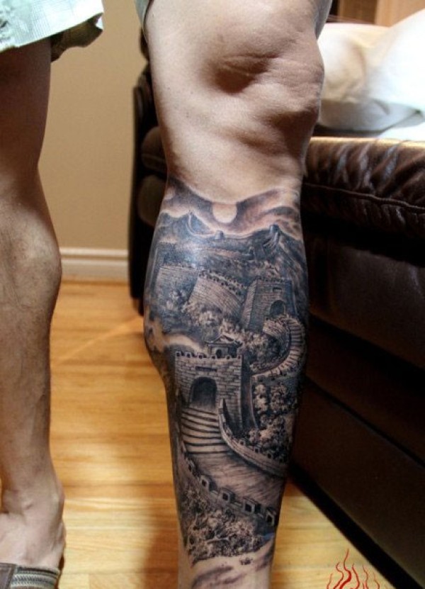 腿部霸气的长城纹身_腿部纹身图案大全_纹身图吧